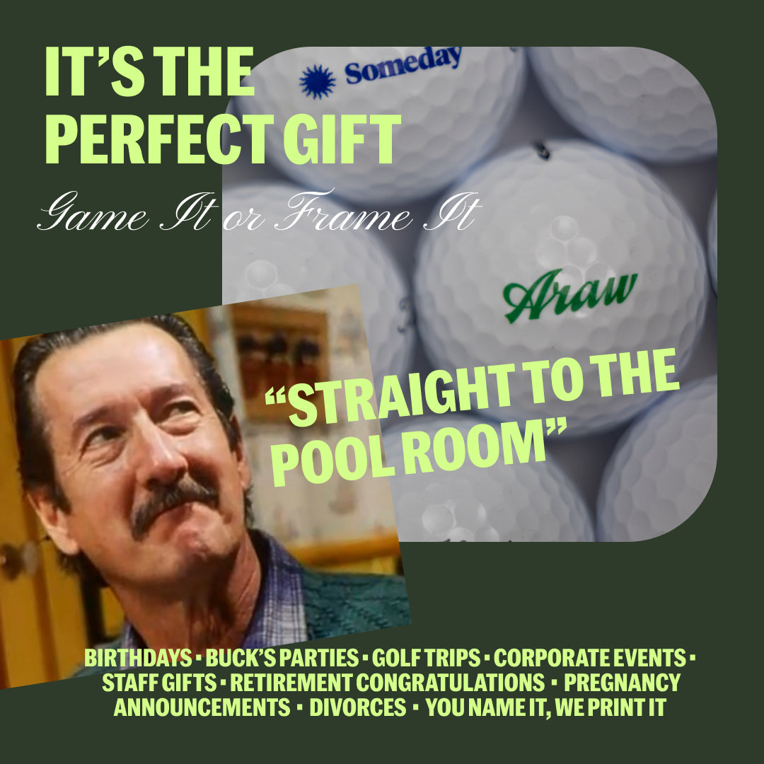 "Printed a sleeve with a photo of his dog, a quote from Caddyshack, and our family name. He’s refused to play with them. Says they’re going on display."
